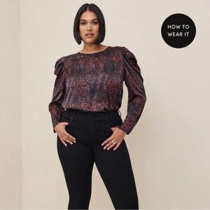 Torrid Satin Puff Long Sleeve Top Leopard Print - Size 2X