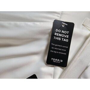 This Torrid Satin Strapless Wedding Plus Size Dress in white is designed for a classic and elegant look. Made from luxurious satin material, this full-length dress features a flattering column/sheath silhouette. The dress is designed for a size 20 women and has a beautiful zipper back closure. Perfect for a formal occasion like a wedding, this dress exudes sophistication and style.