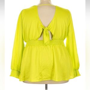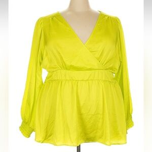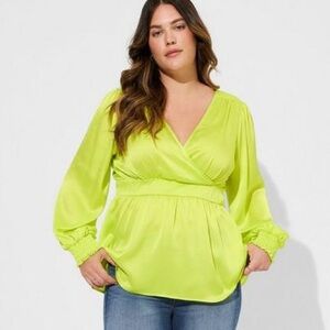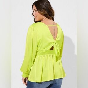 Torrid Satin Surplice Tie Cut Out Back Long Sleeve Blouse Plus Size 3X Lime