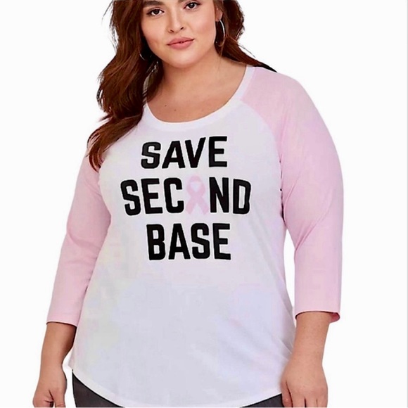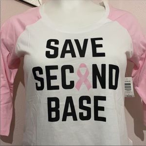 A printed "Save Second Base" graphic on a 3/4 sleeve raglan is soft enough to be your must-have statement shirt.