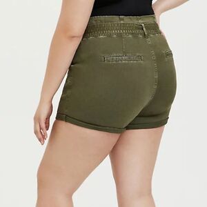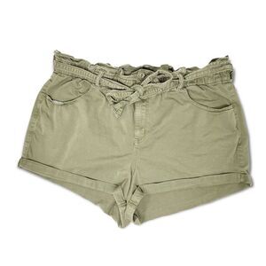 Torrid Self Tie Paperbag Waist Shorts Twill Olive Green Women’s Plus Size 26