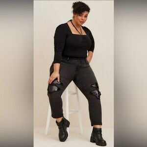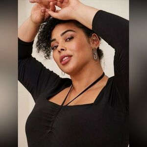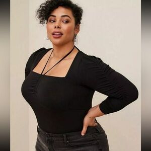 Torrid Sexy Bodysuit Black Size 3 Ruched Halter Tie Puff Sleeve Bodysuit Plus