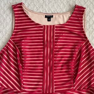 Torrid Shadow Stripe Peplum Top/Blouse - Dark Red - Size 3X (Size 22-24) - NWT. Elevate your wardrobe with this stunning Torrid peplum top featuring a high round neckline, tummy-concealing peplum hem, shadow stripe fabric, sleeveless, nude lining, and easy pullover styling. This top is so versatile...perfect for casual and formal events. Excellent condition - NWT!