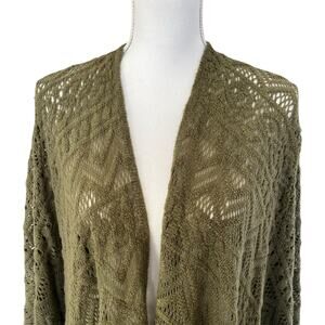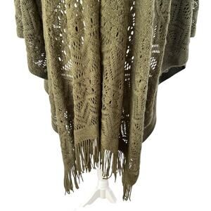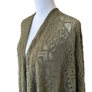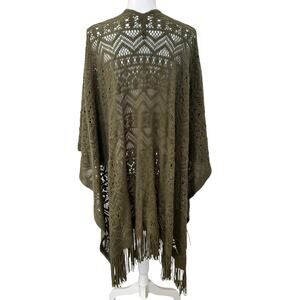 Torrid Shawl Ruana Women's One Size Plus 1X-4X Olive Green Pointelle Fringe