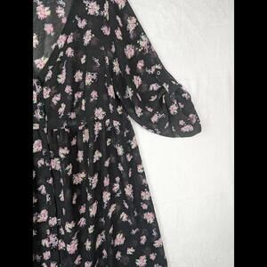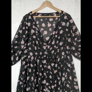 Torrid Sheer Babydoll Dress Topper Black Pink Floral 1X Plus Size