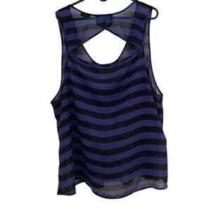 Torrid Sheer Black & Blue Stripe Sleeveless Tank Top Blouse