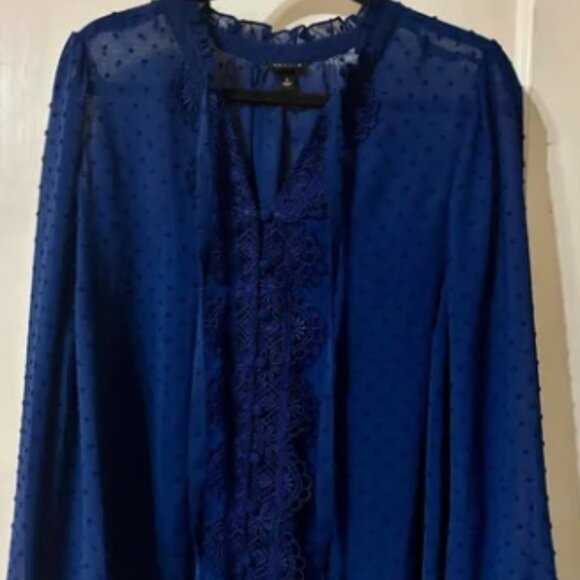 Long-Sleeved Sheer Navy blue button up blouse by Torrid. Worn very few times
