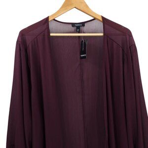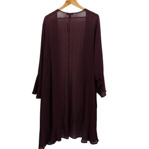 Torrid Sheer Open Front Duster Kimono Bell Sleeve Ruffle Size 5X/6X Witchy Wine