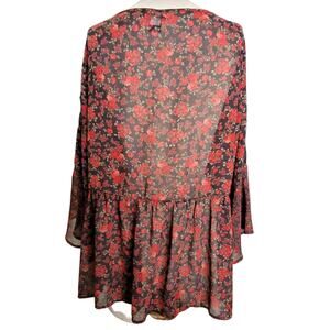 Torrid Sheer Red Rose Boho Chiffon Peasant Top Size Large