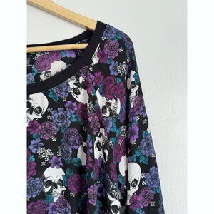 Torrid Sheer Skulls RosesTop Sz 0X Black Purple Gothic Glam Spooky Season Punk