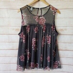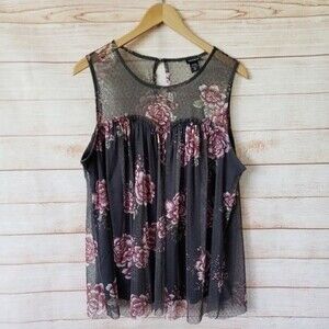 Torrid Sheer/Mesh Floral Sleeveless Top