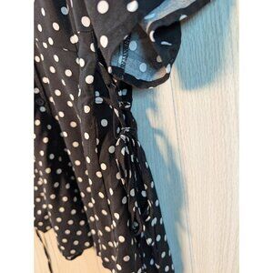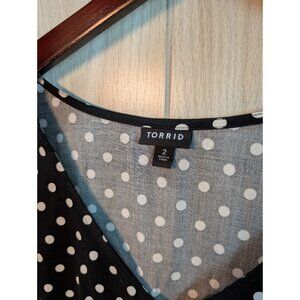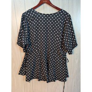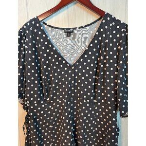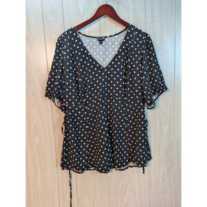 Torrid Shirt 2 (2X) Polka Dot V-neck Tie Side Woven Blouse Flutter Short Sleeve*