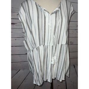 Torrid Shirt Blouse Plus Size 2 2X 2XL Peplum Rayon Striped Sleeveless Tassel