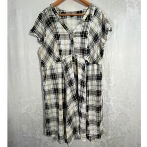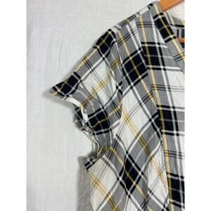 Torrid Shirt Dress 2 2X Black White Gold Plaid Short Sleeve Knee Buttons