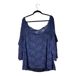 Torrid Shirt Women 4X Navy Blue Peacoat Lined Lace Boat Neck Top Whimsical Party