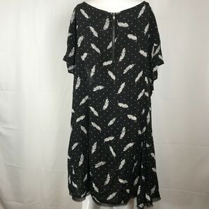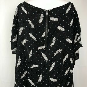 Torrid Shirt Women Sz 3X Black White Feather Polka Dot Lightweight Short Sleeve