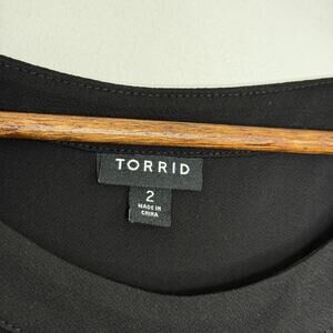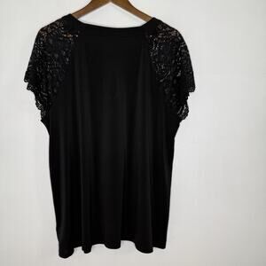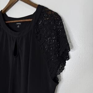 Torrid Shirt Womens 2X Black Lace Sleeve Keyhole Plus Size Stretch Top Blouse