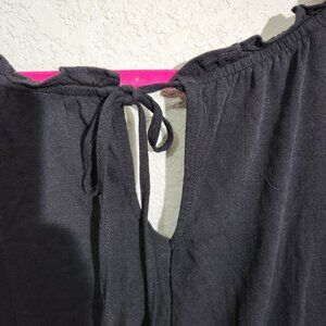 Torrid Shirt Womens 3XL Black Tunic Peasant Top Short Sleeve Tie Back Boho Rayon