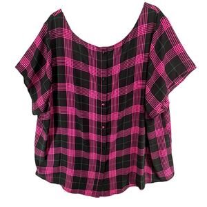 Torrid Shirt Womens 4XL Black Pink Plaid Short Sleeve Button Back Top Plus Size