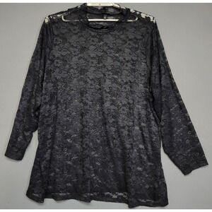 Torrid Shirt Women's Plus Size 5 X (Torrid size 5) Black Sheer Lace Long Sleeve Plus Size Floral Mesh Top