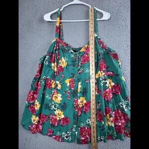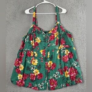Torrid Shirt Womens Plus 3X Green Red Sleeveless Floral Fit & Flare Lace Up