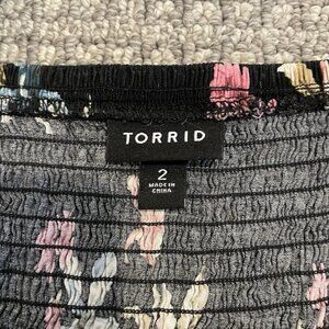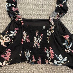 Torrid Shirt Women's Sz 2x Plus Tank Top Cropped Ruched Floral Black Stretch