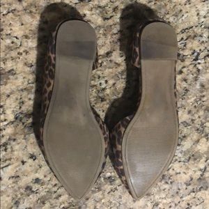 Animal print pointed toed shoe with open side detail. Flat. Wide
