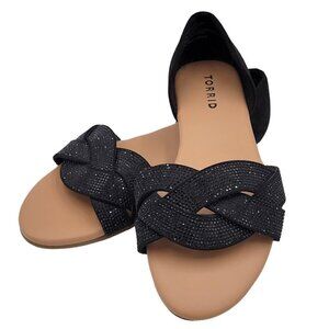 Torrid Shoes Size 8WW Rhinestone Twist Flats Open Toe Cushioned Slip On Slide