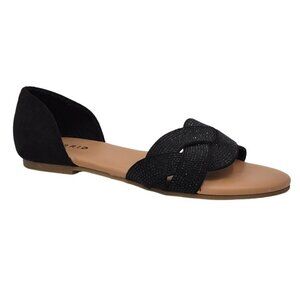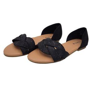 Torrid Shoes Size 8WW Rhinestone Twist Flats Open Toe Cushioned Slip On Slide