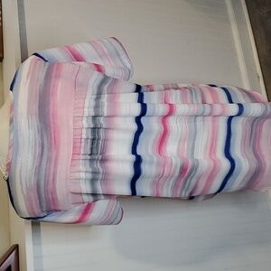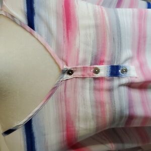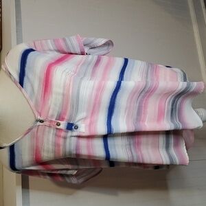 beautiful striped 3 button popover current style from 2022 womens 1X pit to pit 24 Length 33 high low e1