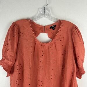 Torrid Short Sleeve Top Size 2X Peach Orange Eyelet Back Cutout Feminine Peasant