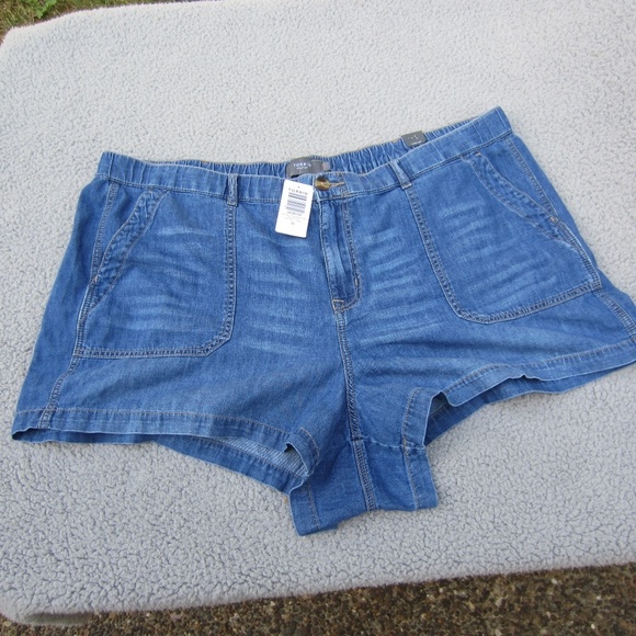 Torrid Short Women's 24 Relax Utility Light Weight Mid-Rise Elastic Waistband ,zip & Button Closure Medium Wash Pockets