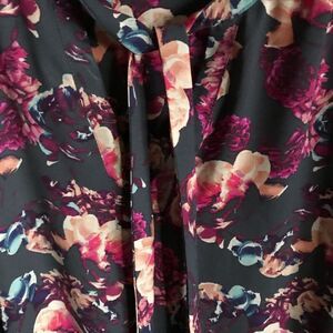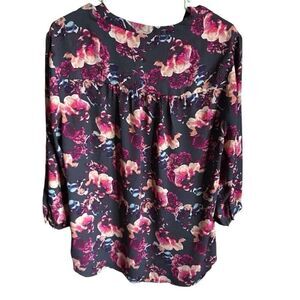 Torrid Short sleeve black/gray pink floral top ties at neck blouse 3/4 sleeves Size 1= 1X plus size - polyester