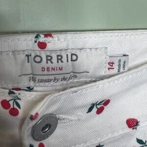 Torrid Shorts Women’s plus size 14 Fruit Cherry Strawberry AOP White Denim