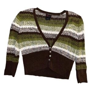 Torrid Shrug Button Front Cropped CARDIGAN Rayon Stretch PLUNGING green brown 2X