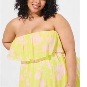 Torrid Silhouette Shadow Floral Maxi Chiffon Strapless Ruffle Dress