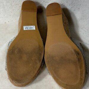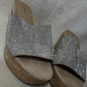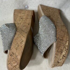 Torrid Silver Rhinestone Cork Wedge Sandals Size 9W Glam **Sparkle** Heels Shoes