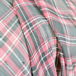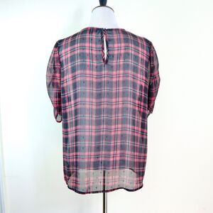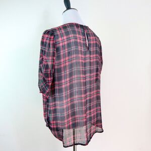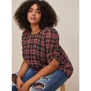Torrid Size 0 / L Chiffon Lurex Ruched Sleeve Blouse Plaid Red Black