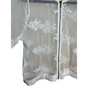 Torrid Size 0 Large Ivory Lace Mesh Embroidered Bomber Jacket Long Sleeve Zip