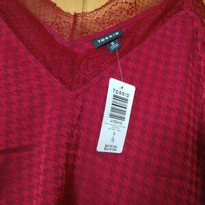 Torrid Size 0 Plus Jacquard Lace Trim Cami Jester Red New Adjustable Straps