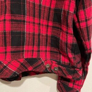 Torrid Size 0 red and black plaid button up jacket with white Sherpa col…