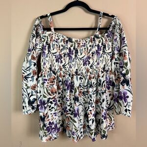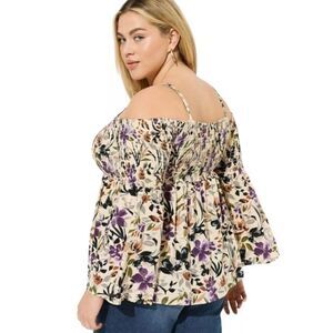 Torrid Size 0 Challis Smocked Cold Shoulder Floral 3/4 Bell Sleeve Blouse NWOT