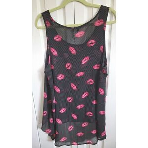 Torrid Size 0 Lip Print Polka Dot Asymmetrical Hemline Sheer Tank Top Blouse