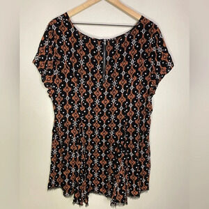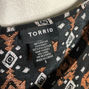 Torrid Size 1 Aztec Print raw hem geometric black short sleeve Challis Flowy Top