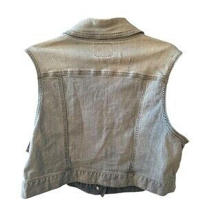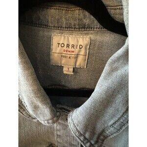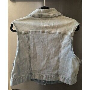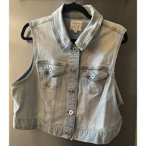 Torrid First at Fit Size 1 Distressed Denim Light Wash Button Up Vest With Chest Pockets Short Length Slight Crop. 98% cotton 2% spandex. Cute edgy vest.