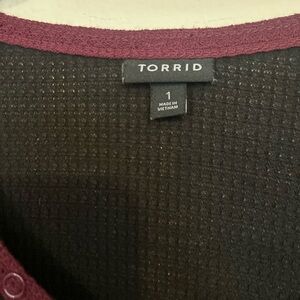 Torrid Size 1 Waffle V-Neck Henley Raglan Long Sleeve Tee