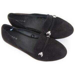Torrid Size 11 WIDE Black Faux Suede Silver Buckles Flat Ballet Slip-On Shoes