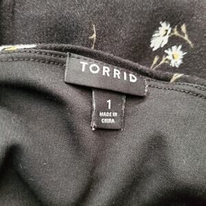 Torrid Size 1=16 Black Daisy Print Lace Up Trapeze Dress Mini Floral Lined