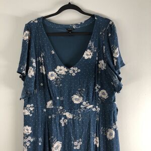 Torrid Size 14 Floral Dots Ditzy Tie Back Waist Flutter Short Sleeve Maxi Dress