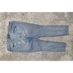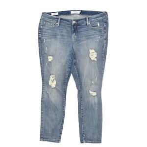 For sale: A pair of gently preowned Torrid skinny jeans that cater to plus-size beauty. These size 18 jeans feature a flattering slim silhouette in a vibrant blue hue, crafted from a comfortable cotton blend. Perfect for adding a pop of color and style to your wardrobe, these jeans blend fashion with the comfort Torrid is known for. Ideal for various occasions, these jeans promise both versatility and style.